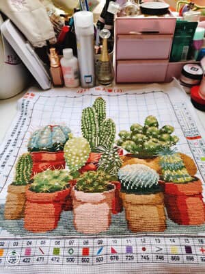 ** ผ้า 14count (เวลาปักใช้ด้าย 3 เส้นเล็ก)