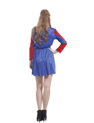 -เดรสสไปเดอร์แมนสีแดงน้ำเงินพิมพ์ลายแมงมุมใยแมงมุมแขนยาว ทรงชุดสวยเข้ารูป