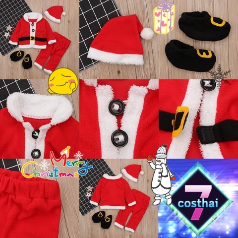 **พร้อมส่ง** 7C160 ชุดเด็กเล็ก ชุดซานตาครอส ชุดซานต้า ชุดคริสต์มาส กระดุมใหญ่ Santa Santa claus Christmas Costumes